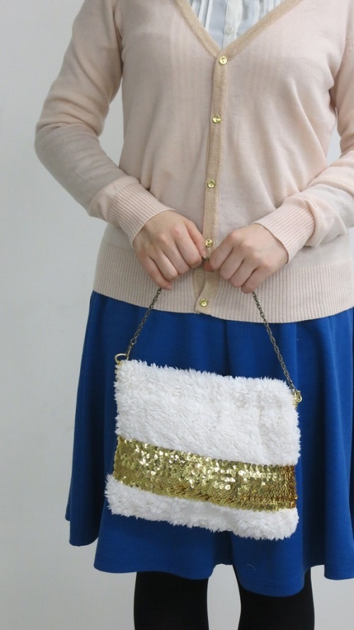 冬のパーティーシーンやちょっとしたお出かけなどに最適な可愛いばね口ポーチ。