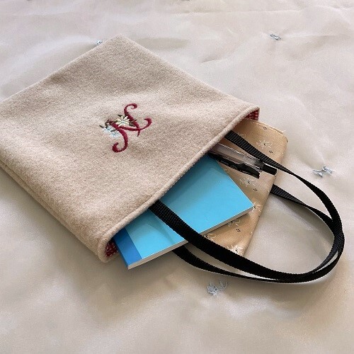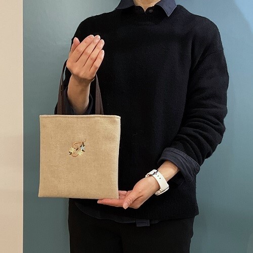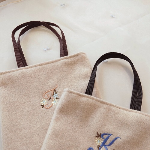 ふわふわしたウール生地にお好みのフローラルアルファベットを刺しゅうします